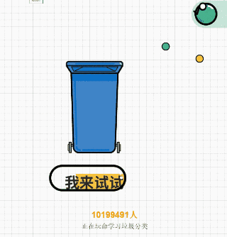 垃圾分类H5小游戏,一共10关,拖拽屏幕上的物品到下面的四个筒中(有害垃圾、可回收物、湿垃圾、干垃圾)。正确时有加分,错误后,会有说明,最后给出垃圾清单,并可以生成海报。